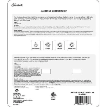 - DUSK TO DAWN – Light operates only in low to no light conditions