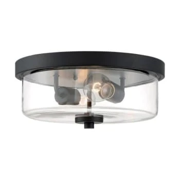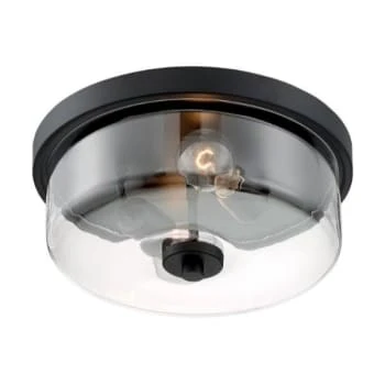 - Satco® Sommerset 2 Light Flush Mount Fixture, Matte Black, Clear Glass