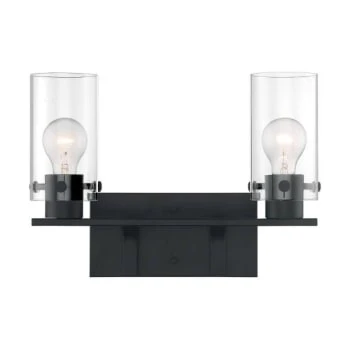 - Satco® Sommerset 2 Light Vanity Fixture, Matte Black Finish With Clear Glass